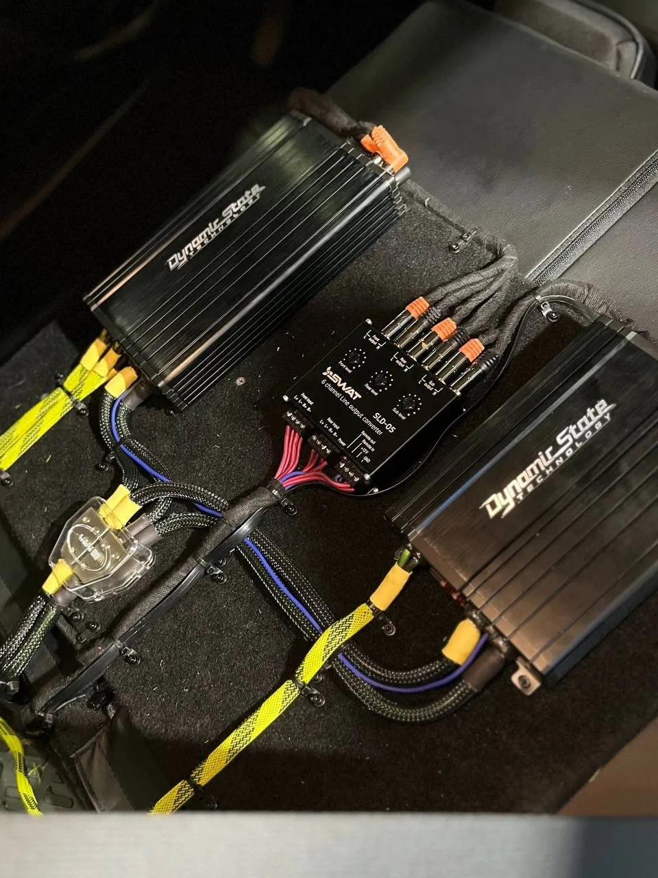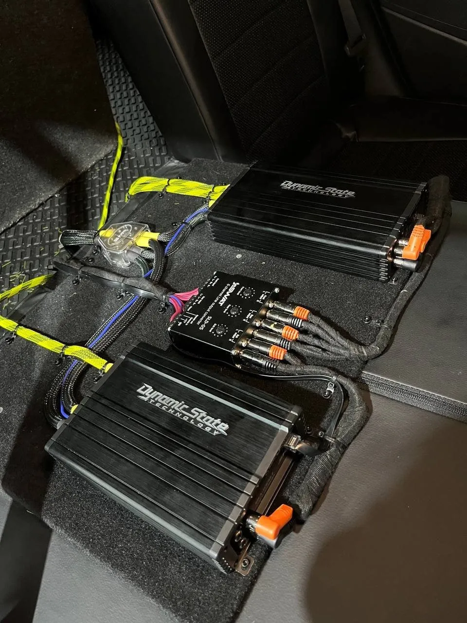 ✅ Установили мидвуферы Dynamic State PM-165.2N PRO Series в передние и задние двери в штатные места.✅ Изготовили фальшпанель и разместили на ней усилители: