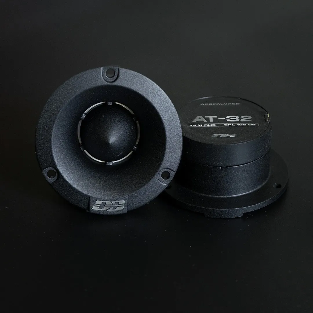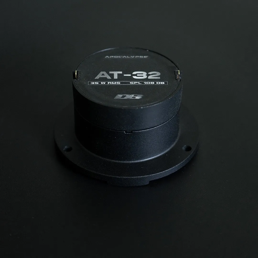 Твитер AT-32 играет экстремально громко с частоты 3 кГц и сохраняет свою эффективность до 18 кГц. Он является самым громким ВЧ динамиком среди всех типоразмеров, представленных на рынке. При этом его внешний диаметр фланца составляет всего 75 мм, а установочная глубина - 32 мм. AT-32 создан с нуля, и любые аналогии остаются на уровне внешнего сходства.